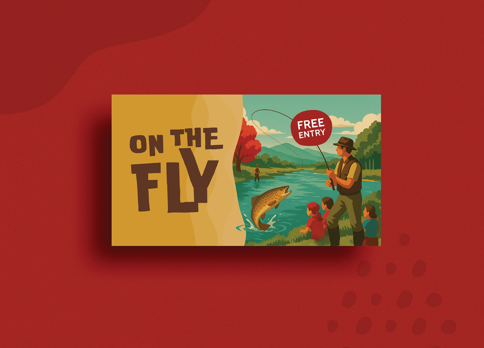 The refreshed approach resolves the festival’s previous identity tension by centring the branding firmly around fly fishing culture, while still feeling contemporary and accessible. The design refines the existing logo and visual language to better align with the event’s purpose, creating a clearer, more confident expression of what On The Fly stands for.