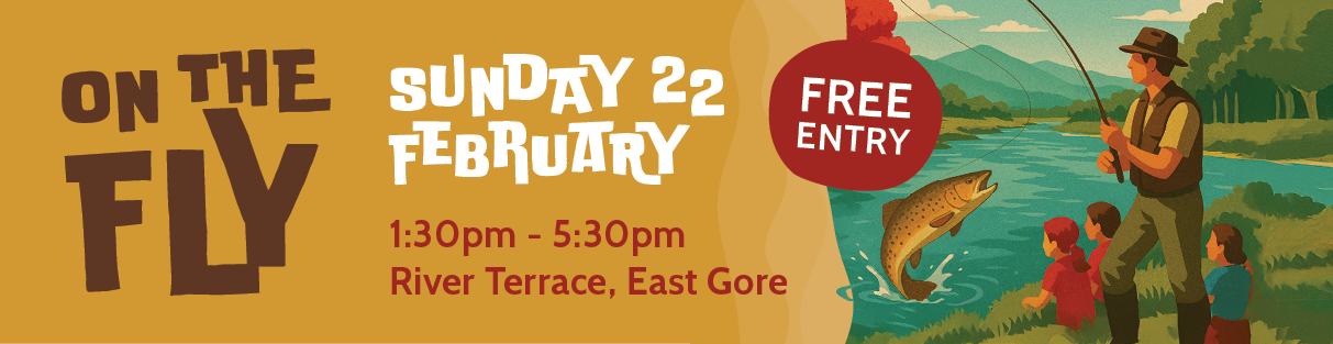 Crispin Design partnered once again with Gore District Council to evolve the On The Fly Festival branding, responding to a clear shift in direction for the event. After reflecting on feedback from local anglers, the focus moved away from the broader summer festival feel and back to what defines On The Fly at its core, fly fishing.