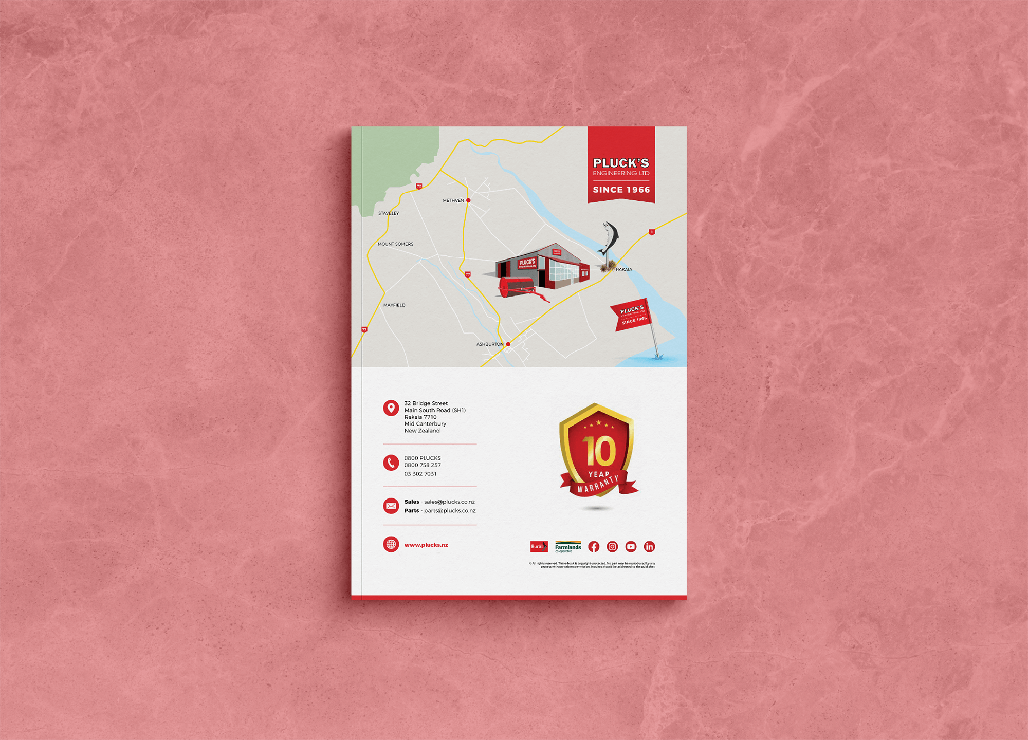 In parallel, we undertook a comprehensive redesign of Plucks’ flagship 32-page land roller brochure. The brochure was restructured to improve readability and flow, with clearer product categorisation, refined layouts, and updated visuals that support both sales conversations and field use.